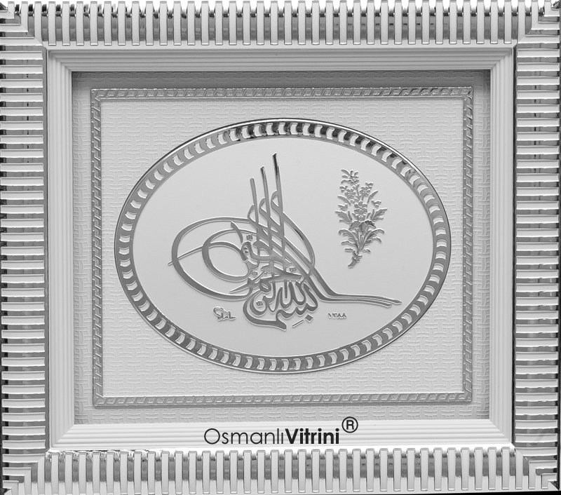: 28 cm x 33 cm Beyaz Gümüş Renk Tuğralı Tablo Çerçeve |