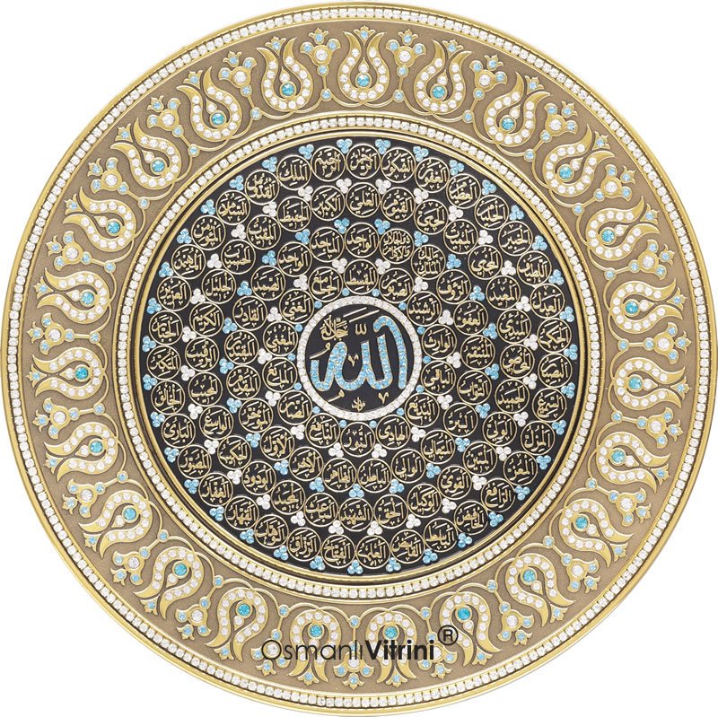 | Ürün Adı | : 33 cm Sarı Tabak Taşlı Esmaul Husna Tablo Çerçeve |